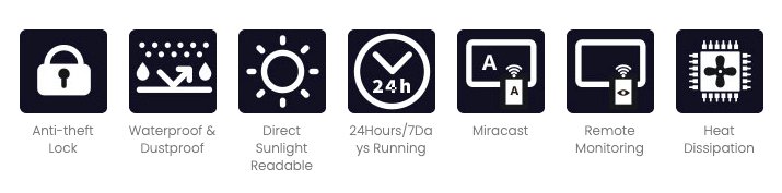 • High-Visibility Brightness  Achieves brightness levels from 2000 to 4000 nits, ensuring visibility even in bright outdoor settings.